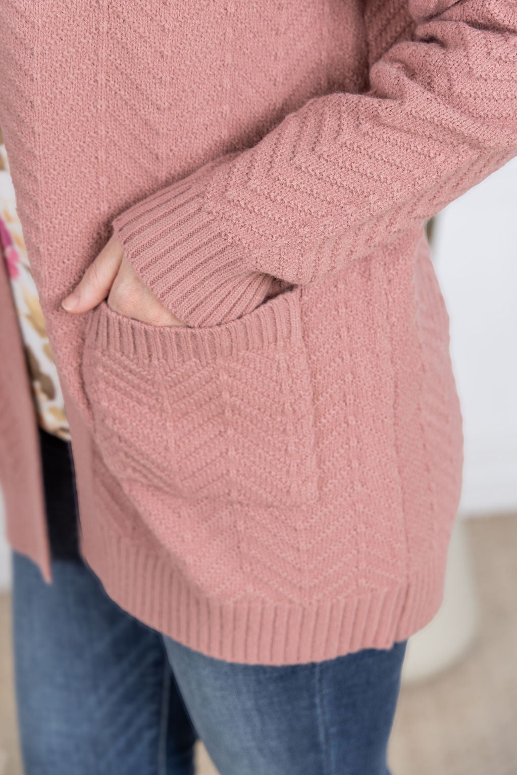 Take on the fall season with a bold attitude in our Billie Open Knit Cardigan. Its fun chevron pattern and rust color will add a touch of adventure to any outfit. With the added benefit of pockets, this open knit cardigan is perfect for taking risks and embracing the changing seasons.